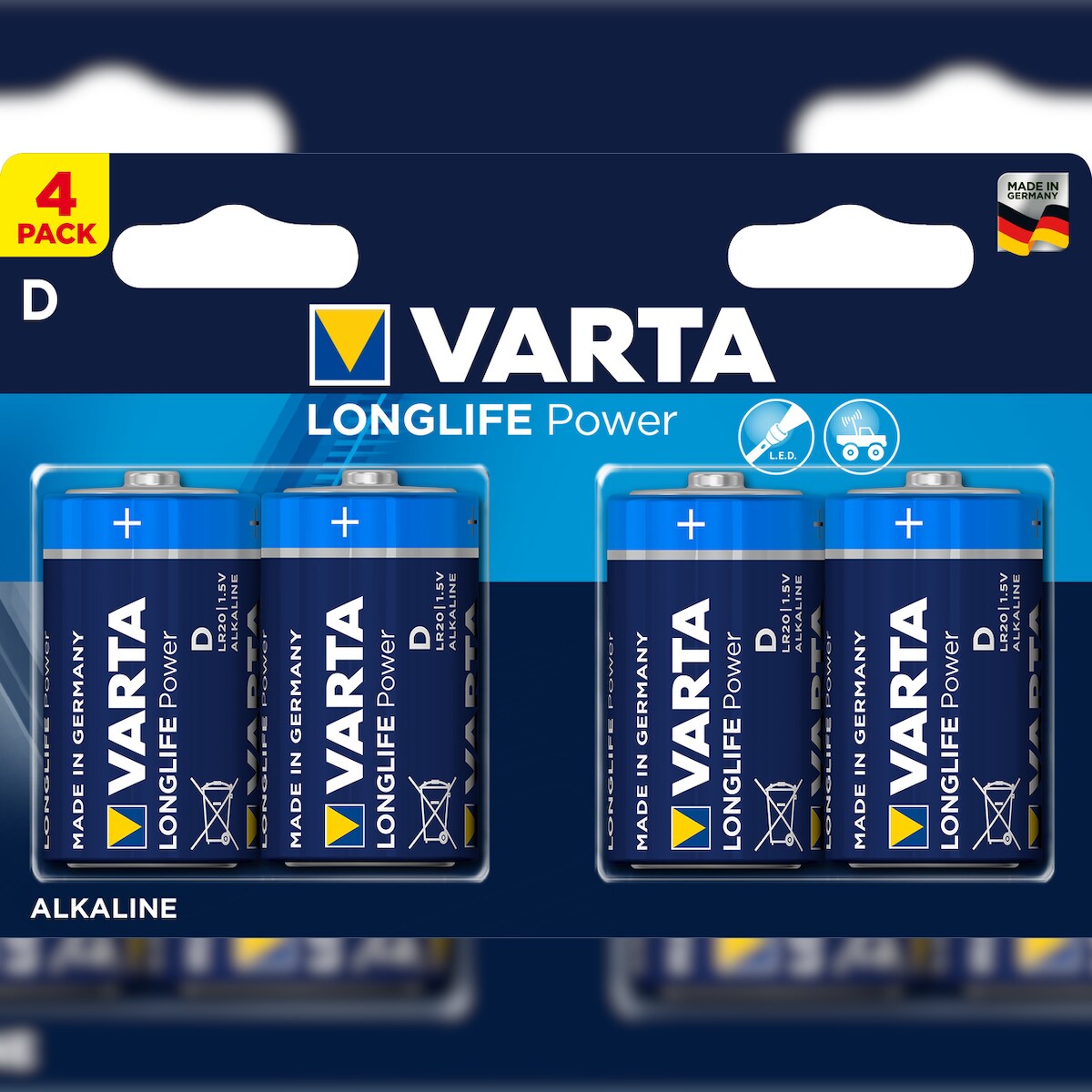 Varta Batterie Alkaline, Mono, D, LR20, 1.5V Longlife Power, Retail Blister (4-Pack)