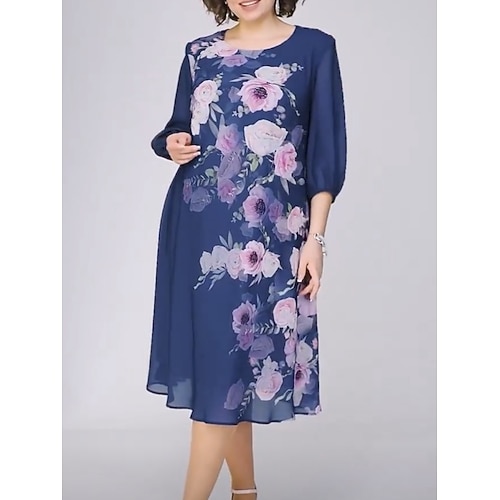 Per donna Abito Midi Abito a Tubino Vacanza Casual All'aperto Uscire Vestibilità comoda Floreale Mezza Manica Girocollo Blu Blu chiaro Nero Estate Primavera Autunno