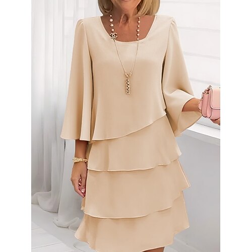Per donna Mini Abito Vestito Casual Abito a Strati Elegante Moda Moderno All'aperto Vacanza Uscire Vestibilità comoda Semplice Mezza Manica Girocollo Rosa Rosso Cachi Estate Primavera