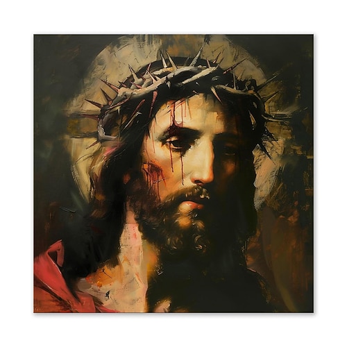 dipinto a olio fatto a mano acrilico tela decorazione artistica da parete figura religiosa volto di Gesù disegno con coltello per arredamento casa dipinto arrotolato senza cornice non allungato