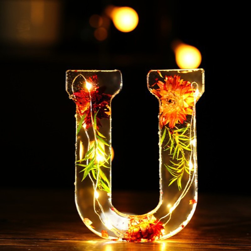 1 Pc 11.5CM 26 letter LED night light, dry flower warm light desktop decoration light, ornament light, Christmas Halloween wedding birthday party decoration light