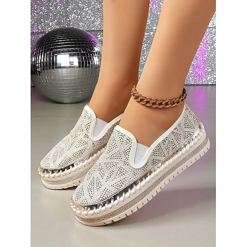 mocassini slip-on da donna con plateau e strass color oro nero, scarpe da festa con suola spessa e scintillante per la vita notturna abiti da club