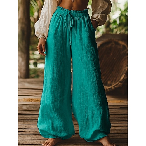 Per donna Gamba larga Chinos Casual Lunghezza intera Vita media Blu Aalbicocca Bianco / Bianco Verde Primavera, Autunno, Inverno, Estate