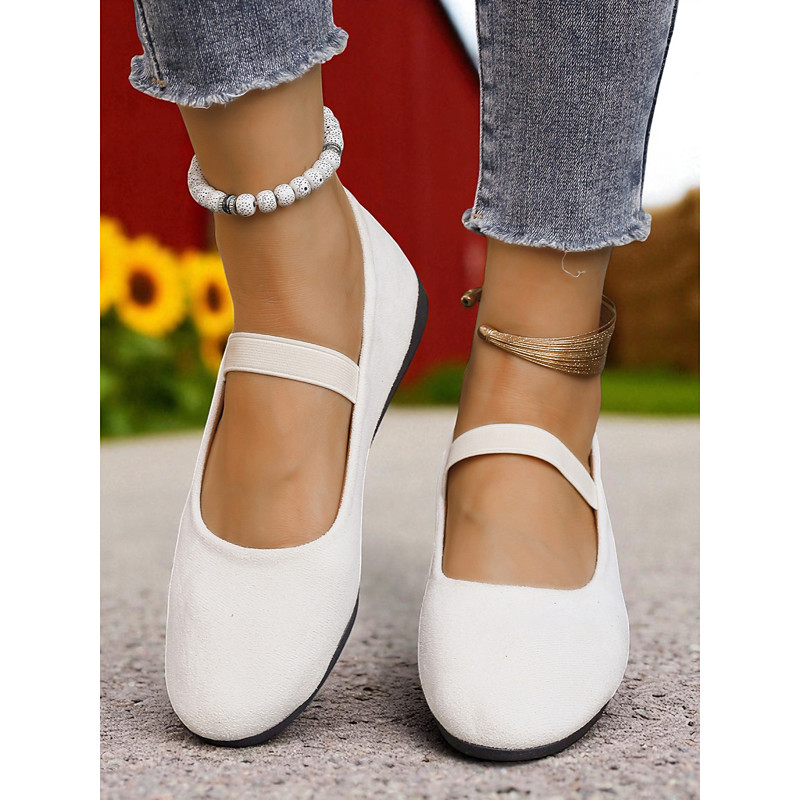 Women's White Mary Jane Flats – Casual Strap Shoes for Garden Strolls, Farm Picnics and Weekend Getaways