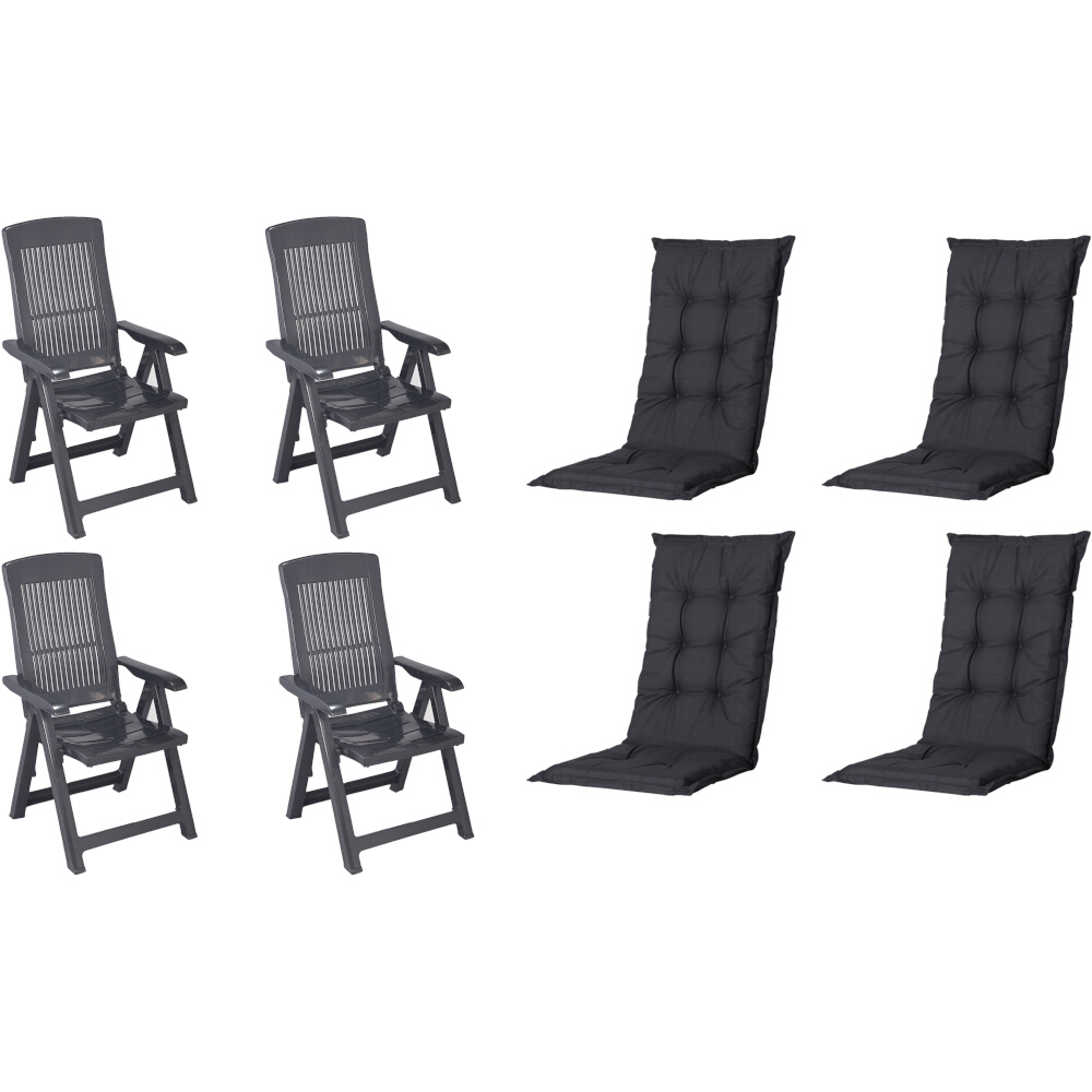 PROGARDEN Pro Garden Tampa SET bestehend aus 4x Klappsessel anthrazit, 4x Auflage Basic schwarz