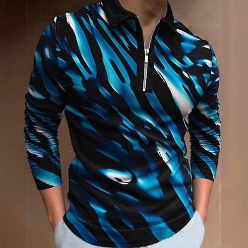 Per uomo Stampa 3D Geometrico Polo Manica Lunga Collo ripiegato Moderno Casual Sport Outdoor Athleisure Casual Quotidiano Cerniera Primavera Autunno Inverno azzurro cielo Rosso Blu