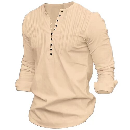Per uomo Camicia Camicia popover Camicia casual Camicia da Spiaggia Camicia con Bottoni Nero Bianco Blu marino Azzurro cielo Kaki Manica Lunga Semplice Girocollo Vacanza Casuale Pieghettato