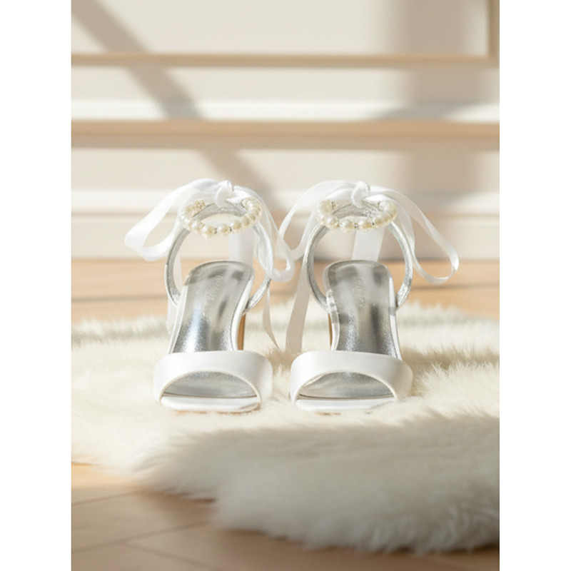 Women's White Pointed Toe Heels with Pearl Anklet Strap - Elegant High Heel Pumps for Weddings, Formal Events, and Special Occasions