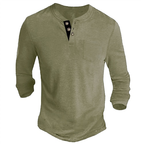 Herren Henley Shirt Tee langarmshirt Glatt Henley Casual Festtage Langarm Button-Down Bekleidung Baumwollmischung Modisch Designer Komfortabel Essential