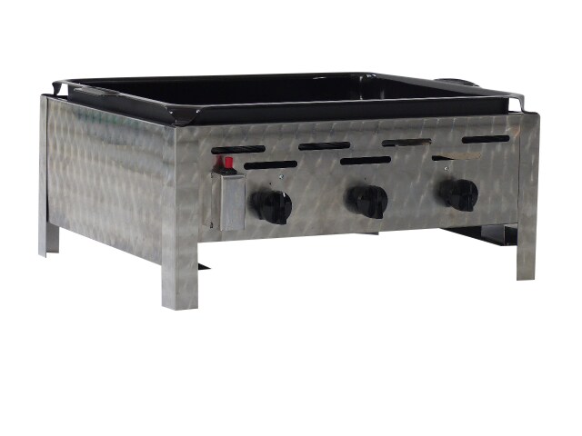 Gastrobräter, 3 Brenner je 4,5 kW, mit emaillierter Pfanne, B 650 mm x T 530 mm x H 270 mm, inkl. Gewerbedruckregler u. Schlauchbruchsicherung