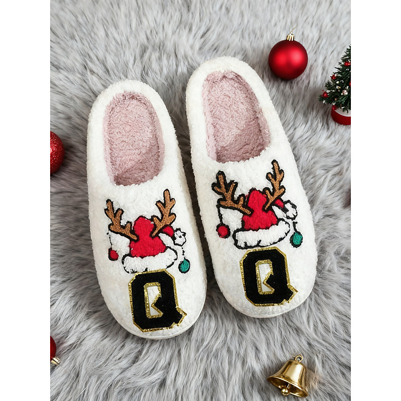 Women's Cozy Christmas Slippers with Reindeer Design – Soft Slippers with 26 Letters to Choose, Holiday Themed, Perfect for Lounging Gift Giving