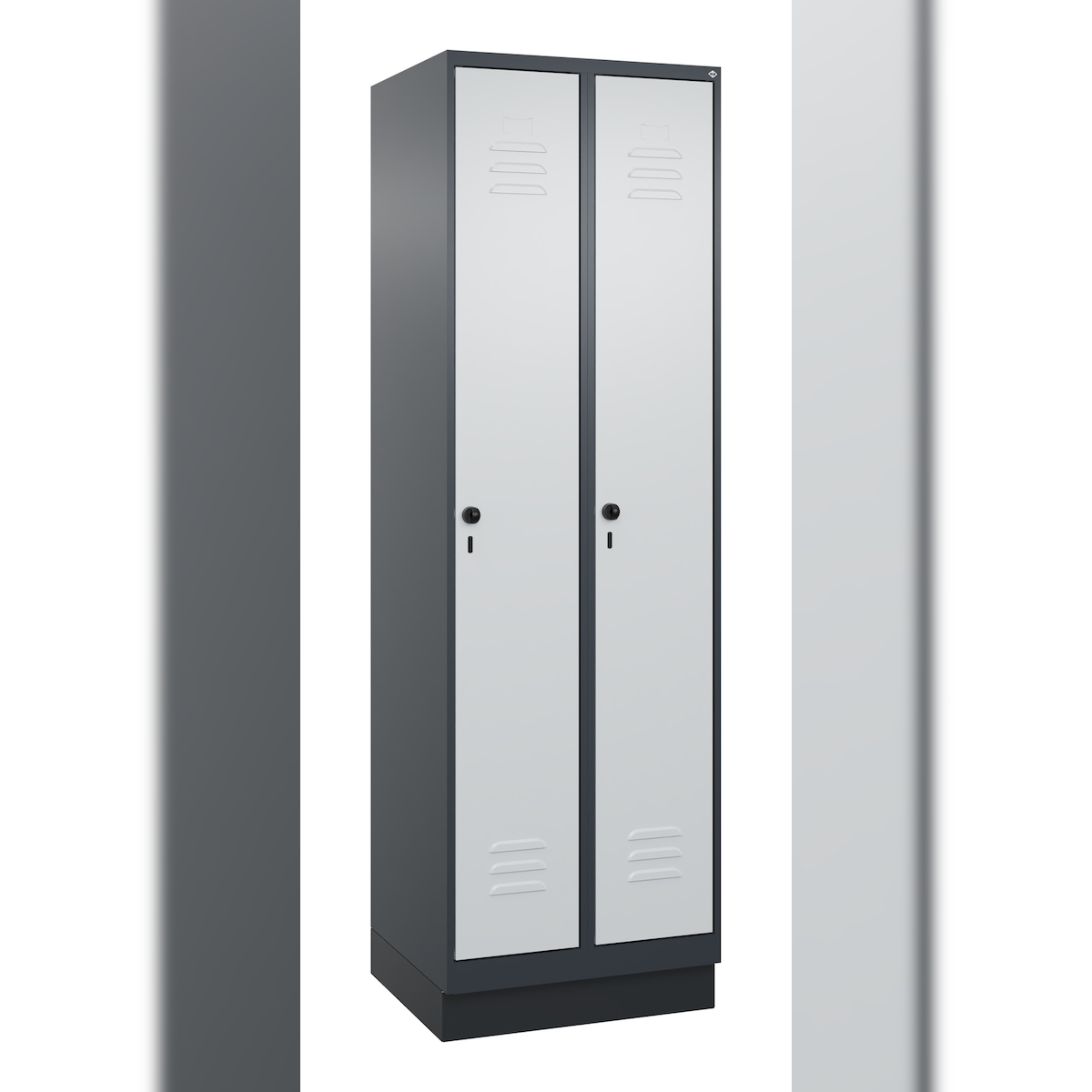 C+P Spind Classic PLUS, Sockel, 2 Abteile, HxBxT 195x60x50cm, Sicherheitsdrehriegel, Anthrazit/Hellgrau von PROREGAL