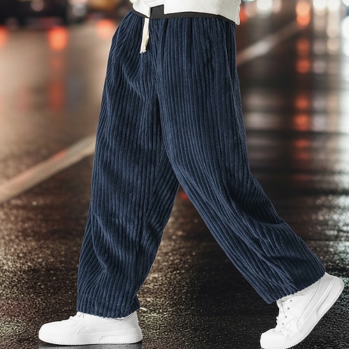 Herren Sporthose Jogginghose Cordhose Hose Gerade geschnittene Sweatpants Tasche Elastischer Bund Kordelzug Einfach Komfort Sport im Freien Täglich Mode Lässig Schwarz Wein Mikroelastisch