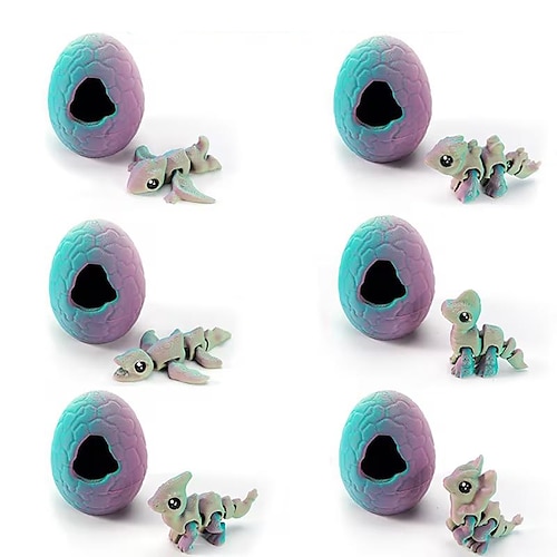 Set di 6 uova di drago pasquali stampate in 3D con mini drago carino all'interno, colore casuale, set di animali a sorpresa stampati in 3D, decorazioni per ufficio domestico, regali di compleanno