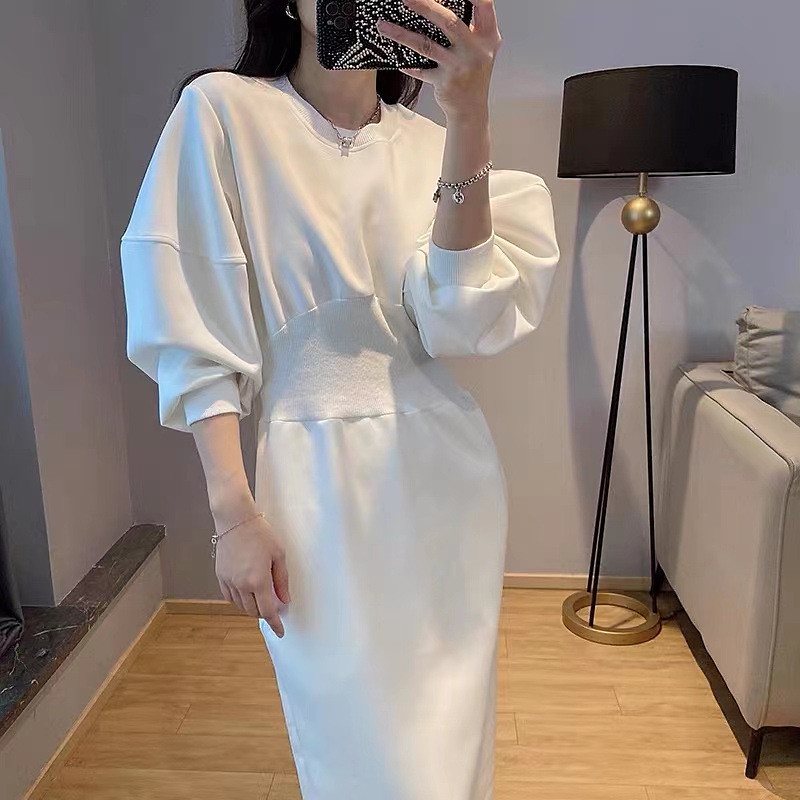 Women's Midi Dress Hoodie Dress Fashion Modern Daily Weekend Regular Fit Plain Long Sleeve Crew Neck Black White Gray Spring Fall