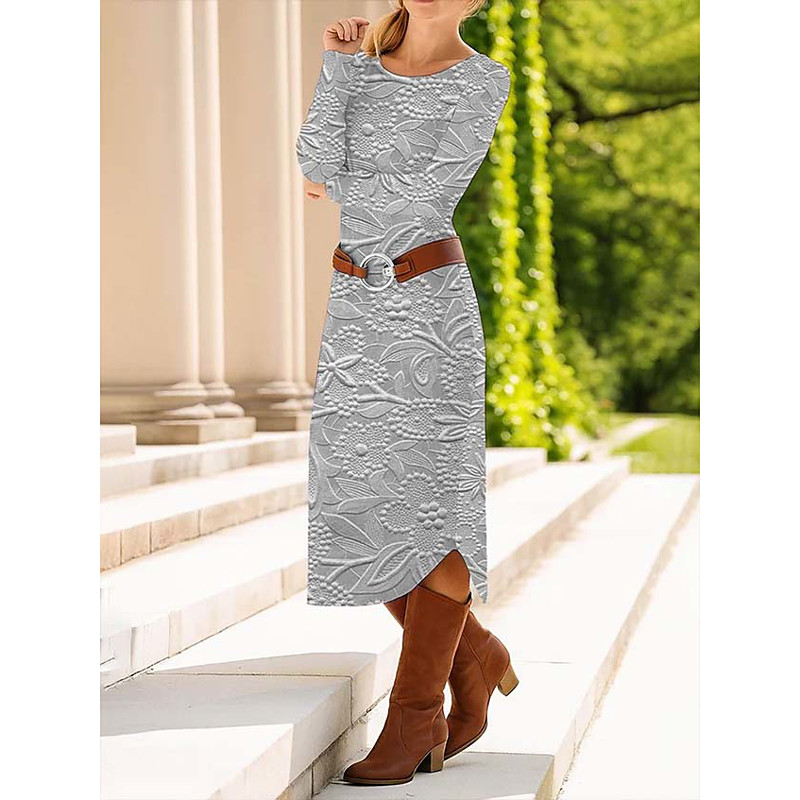 Women's Midi Dress Sheath Dress Shift Dress Casual Daily Regular Fit Floral Graphic Paisley Long Sleeve Crew Neck Pink Purple Apricot Gray Spring Fall Winter Autumn