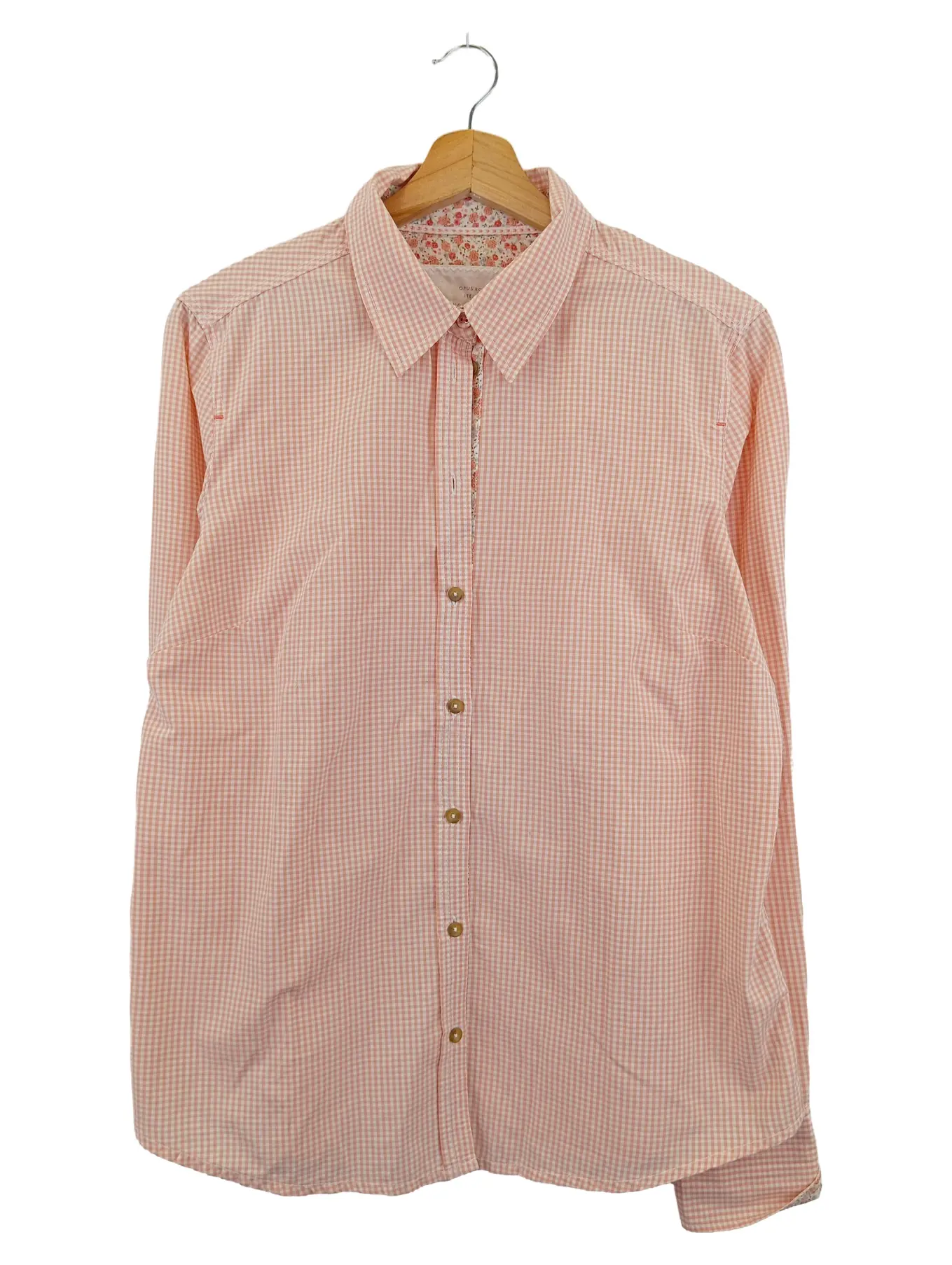OPUS Damen Bluse Gr.40 Rosa Kariert Baumwollmix Vintage-Look