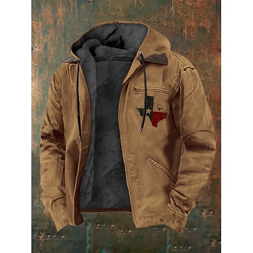 Per uomo Felpa con cappuccio a zip intera Giacca in Pile Felpa con cappuccio in pile Nero Marrone Con Cappuccio Croce Bandiera Americana Tasca Stampato Casuale Quotidiano Uscire Poliestere Streetwear