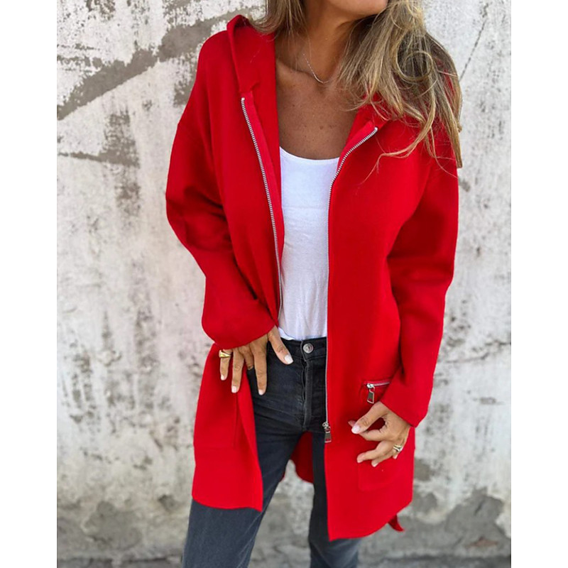 Women's Winter Coat Hoodie Jacket Warm Comfortable Zipper Pocket Casual Plain Outdoor Vacation Home Daily Wear Long Hooded Regular Fit Long Sleeve Outerwear Black Red Camel Fall Winter