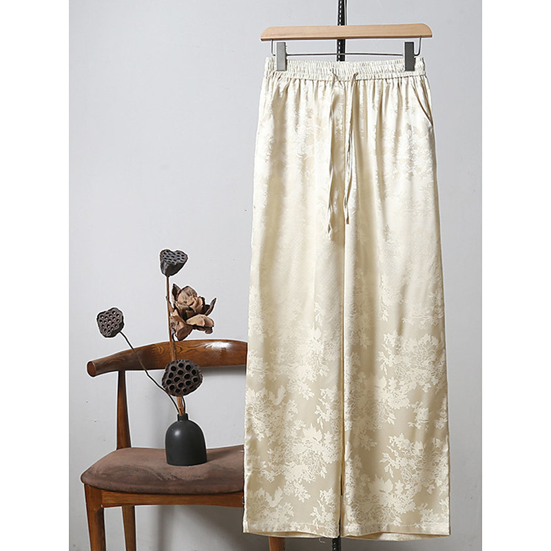 Women's Wide Leg Chinos Cropped Pants Elegant Vintage Fashion Full Length Medium Waist Solid Color Floral Graphic Patchwork Pocket Elastic Waistband Comfy Comfortable Breathable Inelastic Daily Home