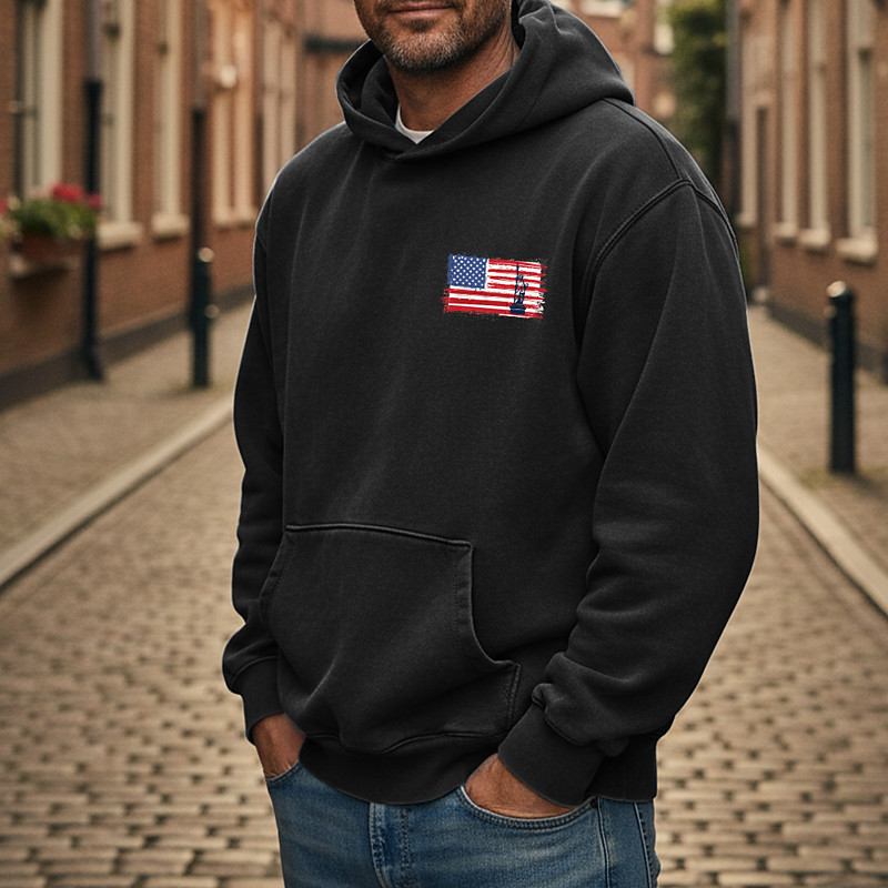 Men's Hoodie Distressed Hoodie Black Yellow Pink Red Blue Hooded American Flag Drawstring Pocket Front Pocket Sports Outdoor Daily Holiday Cotton Streetwear Basic Casual Spring Fall Clothing