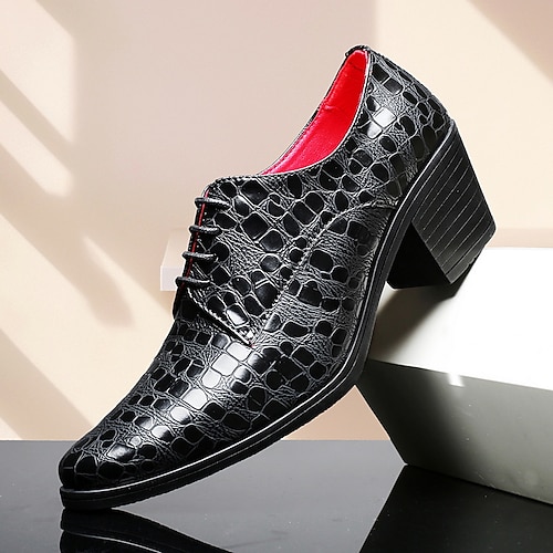 scarpe eleganti da uomo in similpelle nera con motivo coccodrillo – punta a punta, tacco a blocco, stile elegante e formale, perfette per ufficio, feste e matrimoni
