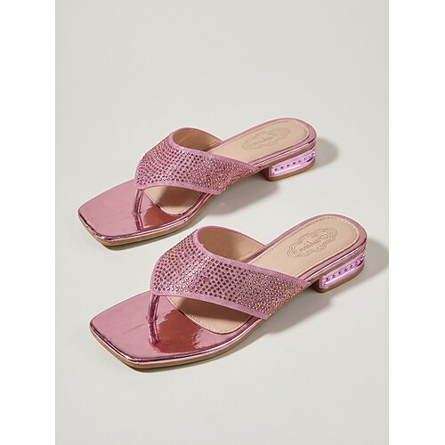 sandali piatti da donna rosa con strass, ciabatte da sera aperte in punta per cena in resort, vacanza occasioni di festa estiva