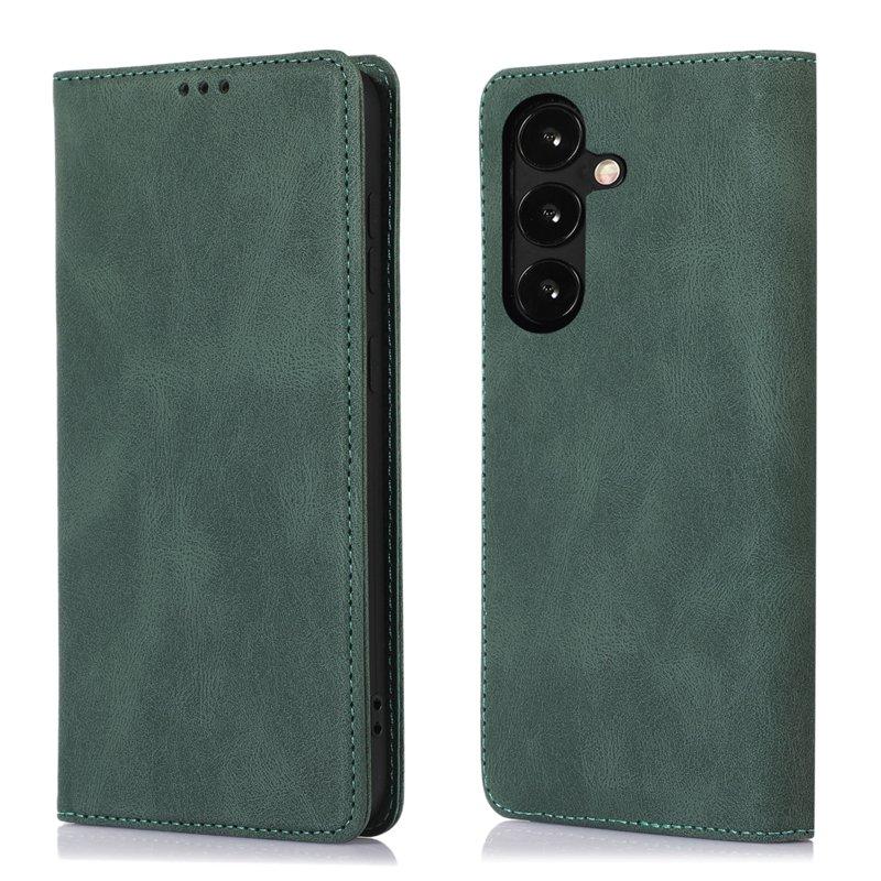 Samsung Galaxy A35 5G Fodral Magnetiskt Stängning Äkta Läder - Grön