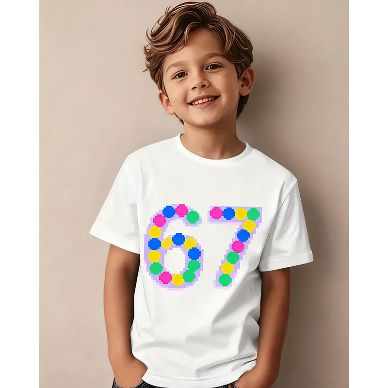 Cotton Kids Boys' Black White Graphic Funny Slang 67 T shirt Blouse Crew Neck Short Sleeve Outdoor Dailywear Fashion Streetwear Designer Printing Summer