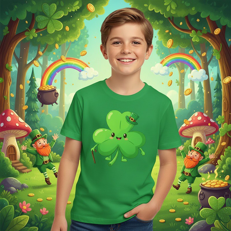St. Patrick Boys 3D Dog Four Leaf Clover Tee Shirt Short Sleeve 3D Print Summer Active Sports Fashion Polyester Kids 3-12 Years Crew Neck Outdoor Casual Daily Regular Fit