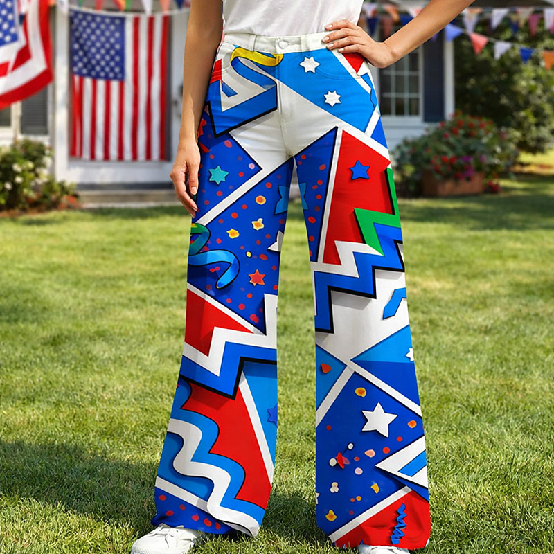American 250 Retro Vintage 1970s Pants Wide Legged Pants Hippie Disco High Waist Fancy Dress Women's Masquerade 4th of July Independence Day Semiquincentennial Adults' Pants