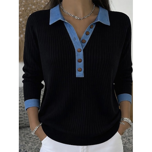 Per donna Camicia casual Blusa Pullover Attivo Vintage Sport Manica Lunga Colletto Polo Top Regolari Blu Nero Arancione Verde Beige Primavera Autunno