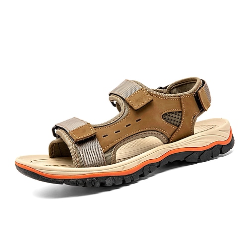 Khakifarbene Herren-Outdoor-Sportsandalen mit verstellbarem Klettverschluss, offene Zehenpartie, bequeme Laufschuhe zum Wandern, Strandurlaub, Reisen, Camping, Outdoor-Abenteuer und als lässige Sommer-Alltagsbekleidung