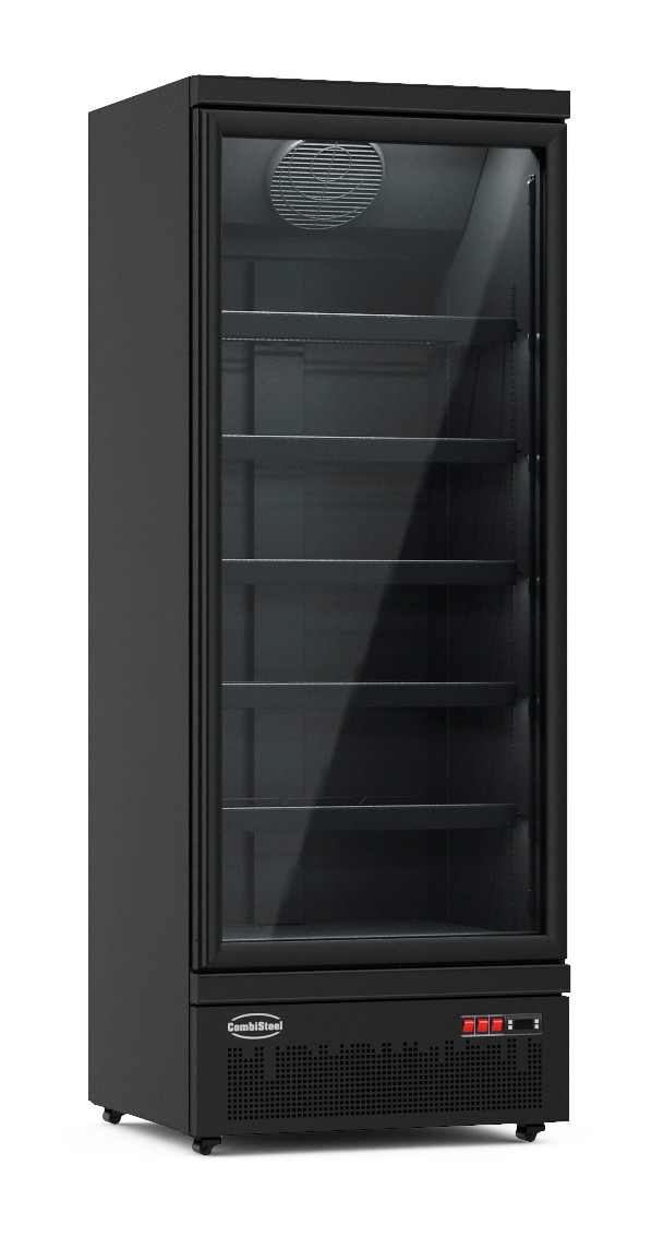 Kühlschrank RHINO auf Rollen | 1x Glastür + LED | 600 Liter, HxBxT 199,7x75x71cm | 0/+10°C | Schwarz + CHEFGASTRO Geschirrtuch