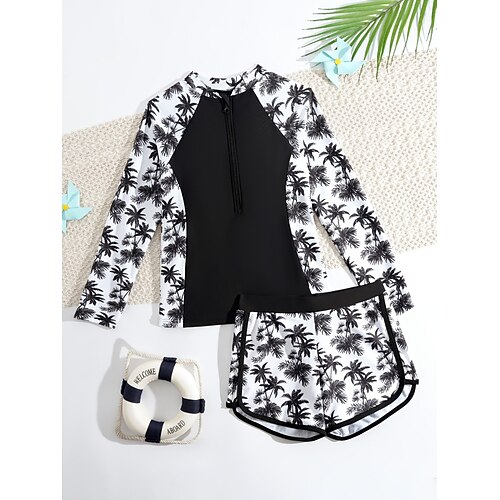 Bambini Ragazze Costume da bagno All'aperto Spiaggia Grafico Foglia Vacanza Tropicale Sport Costumi da bagno Dai 4 anni in su Estate Blu Nero