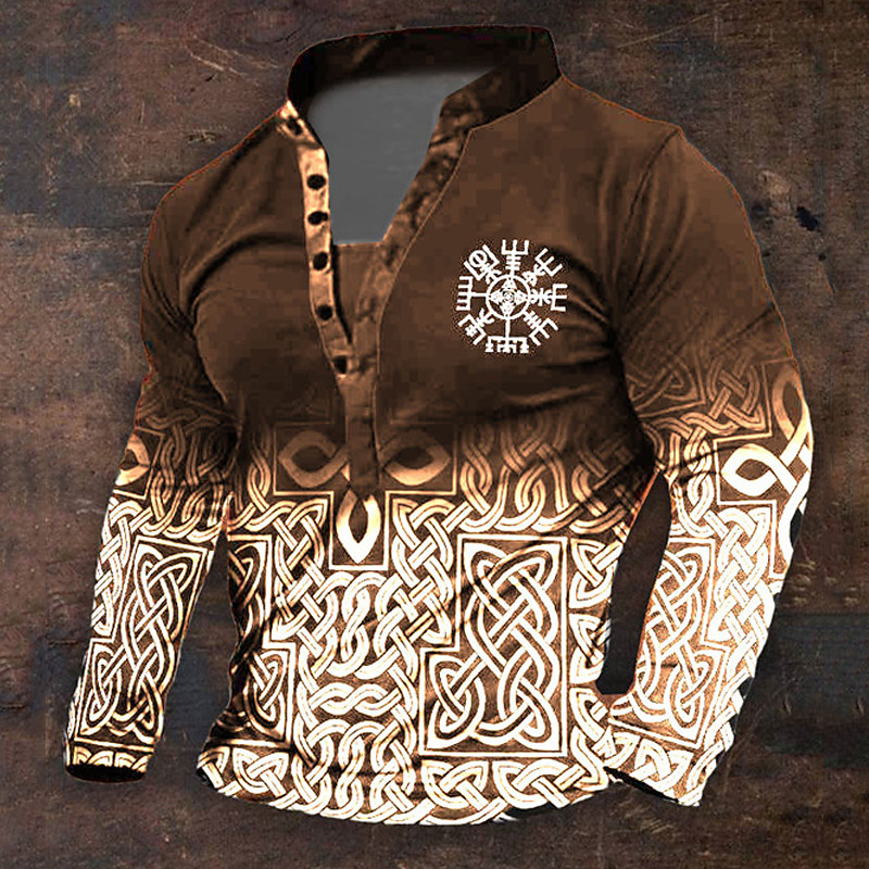 Men's Halloween Graphic Viking Henley Shirt Long Sleeve 3D Printing Daily Retro Vintage Casual Holiday Going out Festival Spring Fall Black Blue Brown Green Henley Henley T-Shirt