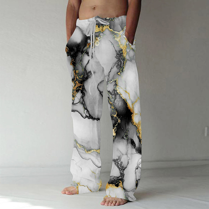 Men's Marble Abstract Art Trousers Baggy Pants Casual Pants Mid Waist Casual Vacation Holiday Beach Wear Elastic Waist Wide Leg Drawstring Summer Spring 3D Print Black Yellow Green
