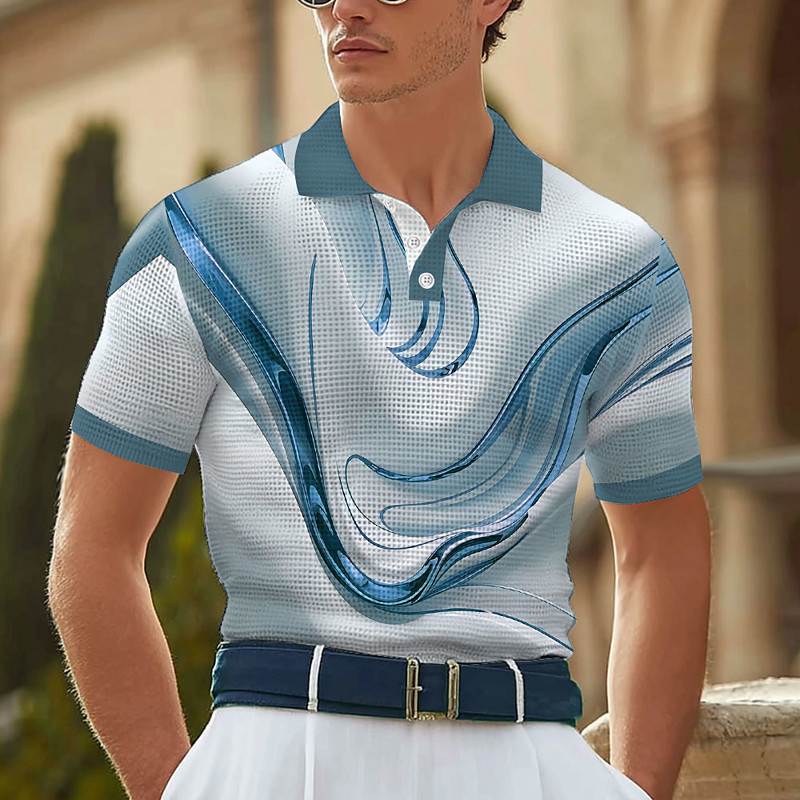 Men's Abstract Marble Waffle Polo Shirts Short Sleeve Polo Shirts Collared Shirts Business Casual Athleisure Daily Wear 3D Print Buttons Summer Blue Gold Green