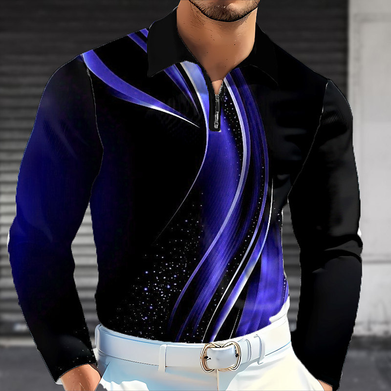 Men's Geometic Line Polo Long Sleeve Polo Shirts Lapel Business Casual Business Daily Wear 3D Print Buttons Spring Fall Lake blue Blue Green