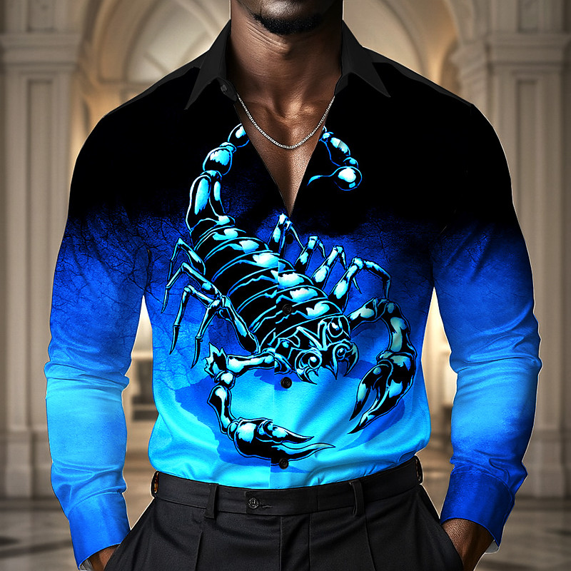 Men's Gradient Color Scorpion Shirt Satin Shirt Dress Shirt Long Sleeve Vintage Retro Vacation Dailywear Summer Spring Fall Turndown 3D Print Button Up Shirts Red Blue Green