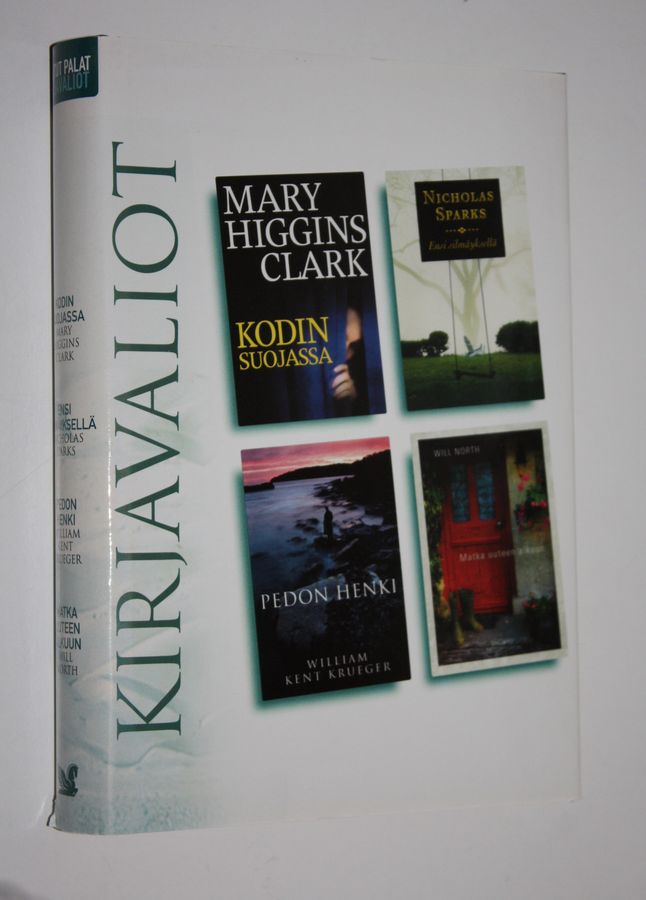 Kirjavaliot : Higgins Clark, Mary : Kodin suojassa ; Sparks, Nicholas : Ensi silmäyksellä ; Kent Krueger, William : Pedon henki ; North, Will : Matka