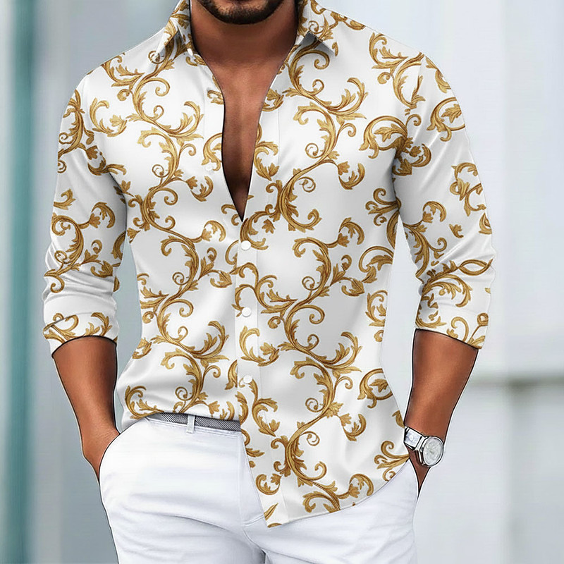 Men's Floral Print Baroque Flowers Shirt Satin Shirt Dress Shirt Long Sleeve Vintage Retro Vacation Dailywear Summer Spring Fall Turndown 3D Print Button Up Shirts Black White Red Blue