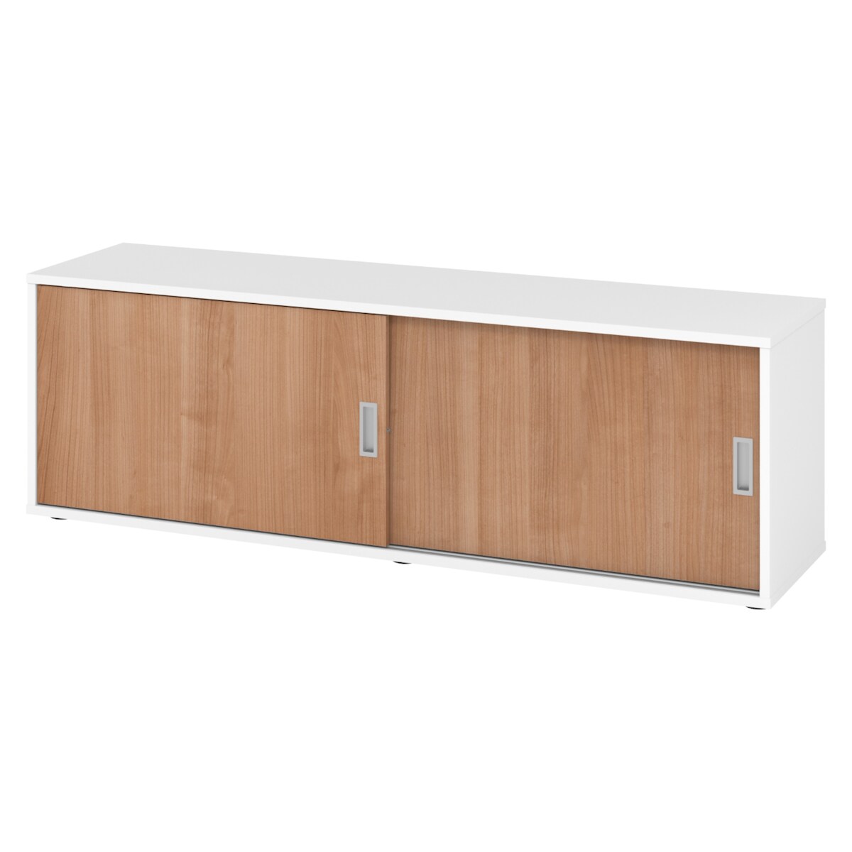 bümö Lowboard Schiebetürenschrank in Weiß/Nussbaum - Büromöbel Sideboard aus Holz, 160 cm breit, Büroschrank nur 40 cm schmal, Büro Schrank mit