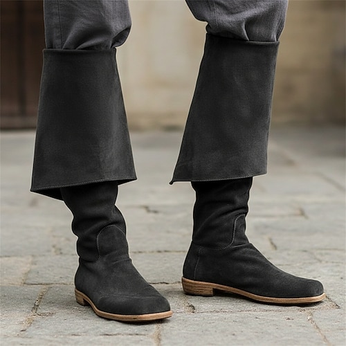 Retro Vintage mittelalterliche Renaissance-Schuhe, flache Jazz-Stiefel, Pirat, Ritter, Ritter, Herren, Unisex, Halloween, Event/Party, Maskerade-Schuhe, ausgefallene mittelalterliche Stiefel
