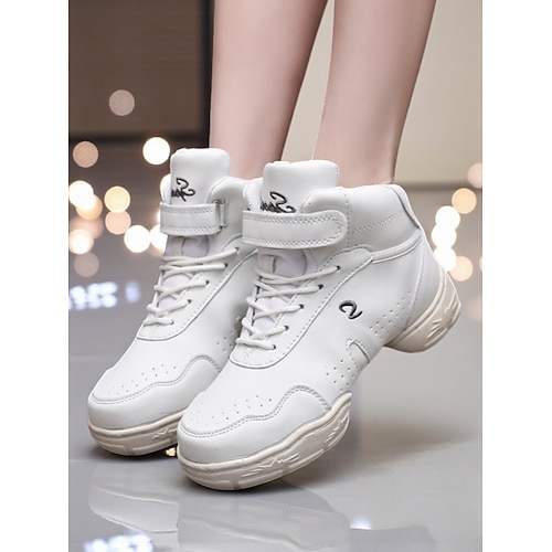 Women's White Leather Professional Dance Sneakers, Lightweight Split Sole Jazz Shoes for Latin, Hip Hop Ballroom Practice Training