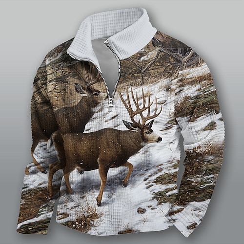 Per uomo Cervo Nido d'ape Felpa Casual Vintage Retrò Da caccia Collo alla coreana All'aperto Casa Regalo Nero Marrone Verde militare Grigio Con zip Autunno Inverno progettista S M L XL XXL XXXL