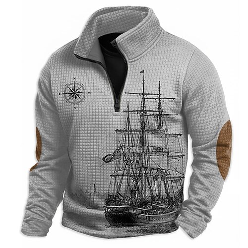 Per uomo Nave Felpa con cappuccio Waffle Felpa Moda Vintage Retrò Collo alla coreana All'aperto Casa Regalo Blu chiaro Verde chiaro Cachi Grigio Con zip Autunno Inverno progettista S M L XL XXL XXXL