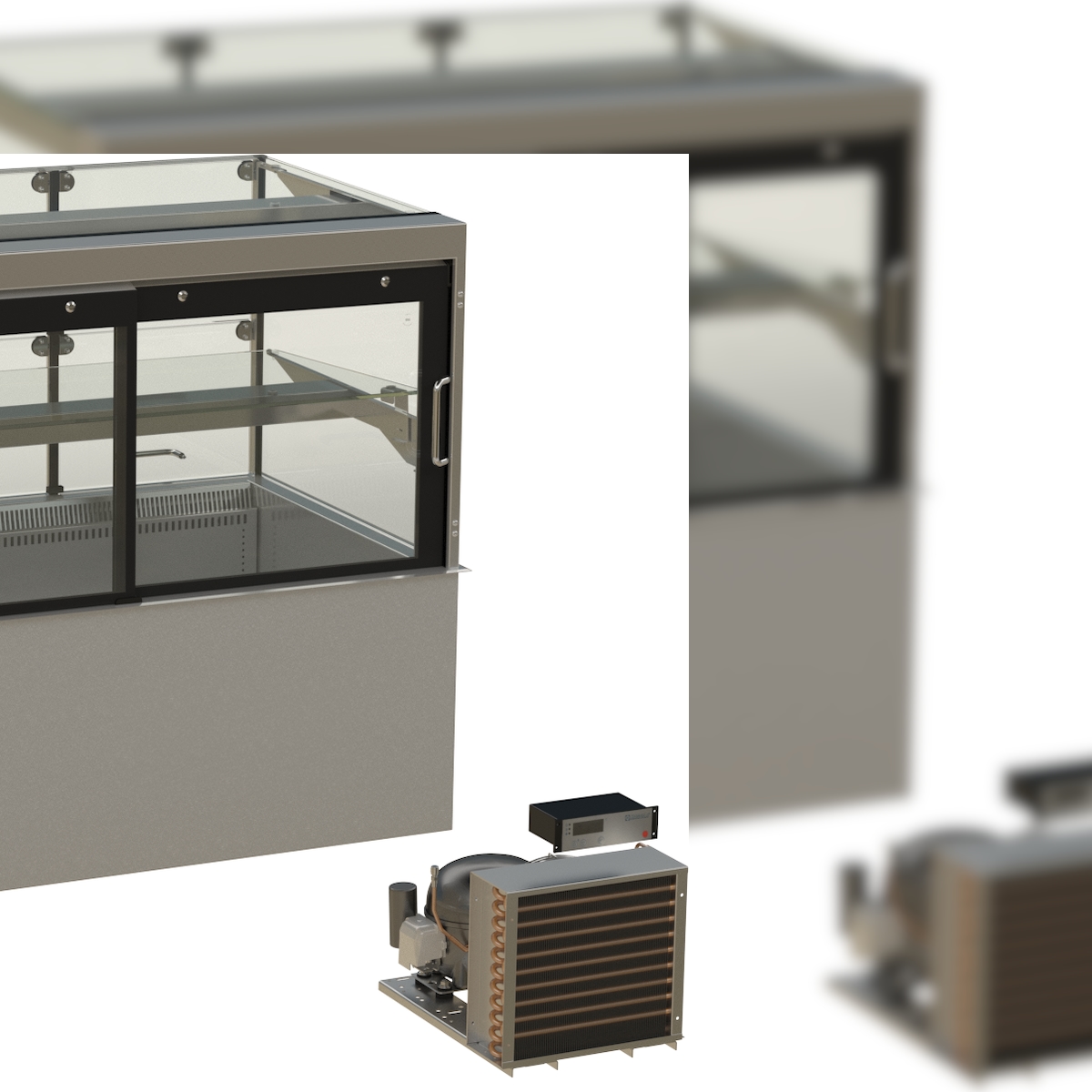 HAGOLA Showcase "Göteborg" eckig, SBE, für 3xGN1/1, 2 Auslagen. 200mm Tiefe, 1085x510/400x710mm (BxHxT) steckerfertig mit Schnellkupplung