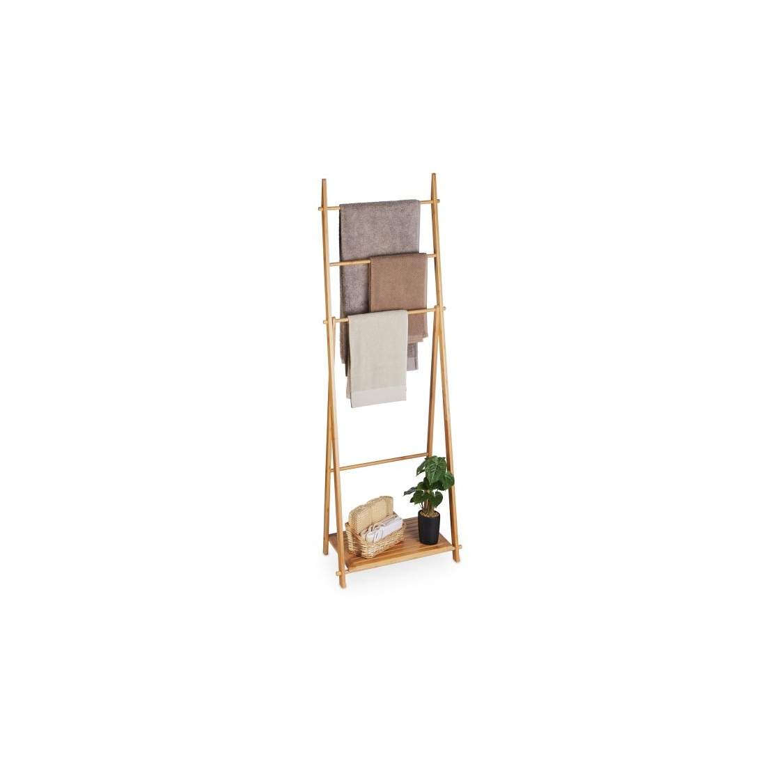Naulakko, Vaateteline, 8 koukkua, 3 tasoa, Hattuteline, Vaatteet, Sisäänkäynti, Eteinen, 45 x 45 x 170 cm, Bambu, Luonnollinen |