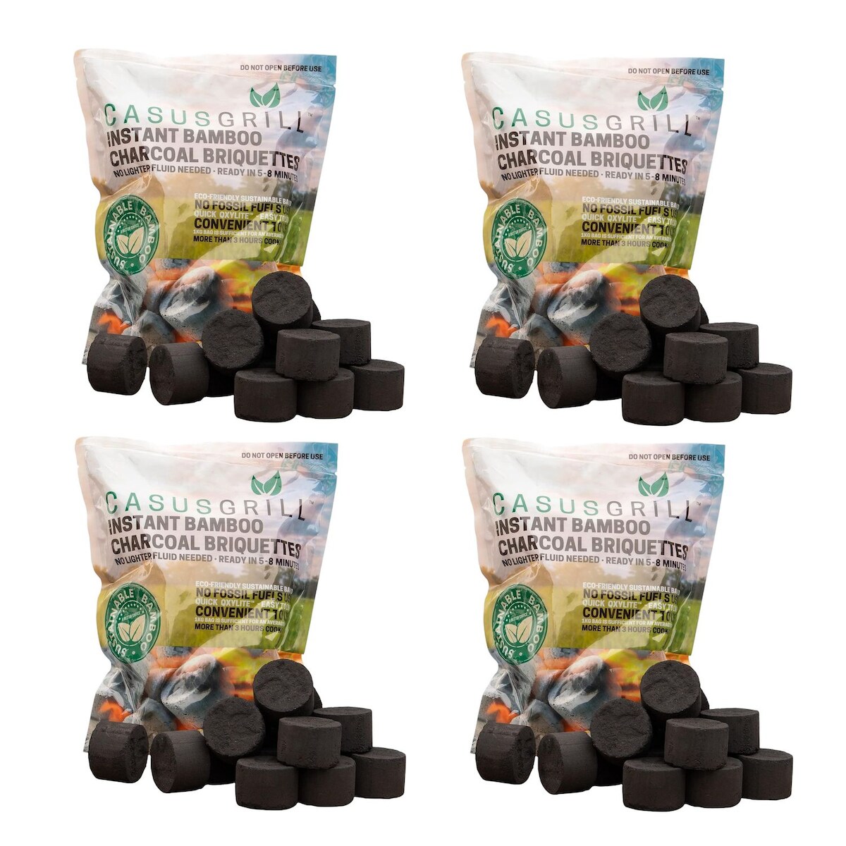BURI 4x CASUSGRILL Grillkohle-Briketts aus Bambus natürliche Materialien Grillbriketts